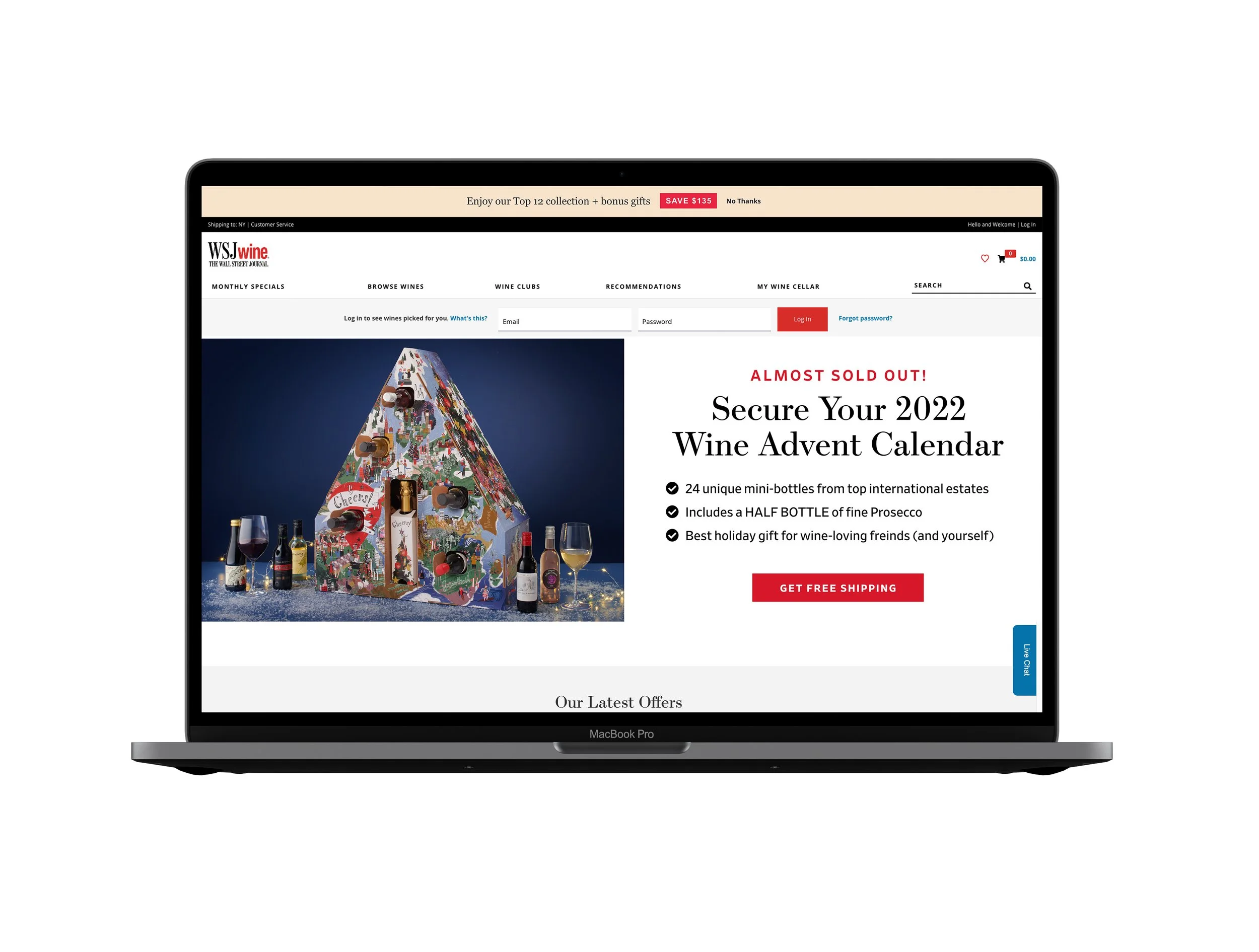 Homepage spot promoting the WSJwine Advent Calendar. This wine case was featured on Oprah’s 2022 list of the Best Wine Advent Calendars to Toast the Holiday Season. The Affiliate Marketing banners were implemented to promote the product and drive customers to the corresponding landing page.